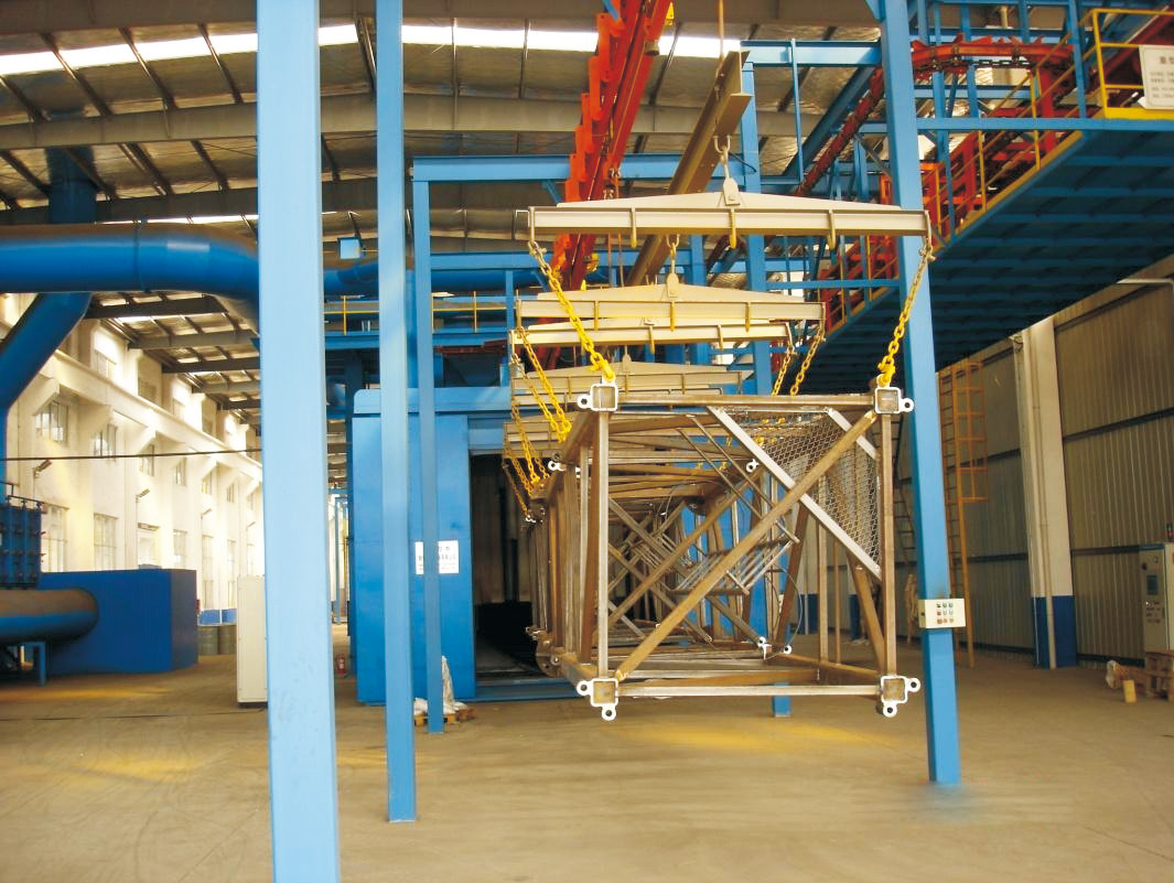 ![]() 結(jié)構(gòu)件自動(dòng)拋丸線主要用于清理結(jié)構(gòu)部件的銹層、氧化皮、強(qiáng)化表面硬度,通過該設(shè)備處理的結(jié)構(gòu)件,表面達(dá)到一定的粗糙度,提高了漆膜與鋼材附著力,相應(yīng)提高了產(chǎn)品抗腐蝕能力和表面質(zhì)量。該設(shè)備機(jī)電一體化,自動(dòng)化程度較高。設(shè)備主要由:自行電動(dòng)葫蘆輸送系統(tǒng)、拋丸清理系統(tǒng)、磨料循環(huán)系統(tǒng)、通風(fēng)除塵系統(tǒng)、人工吸丸、清塵系統(tǒng)、電氣控制系統(tǒng)組成。